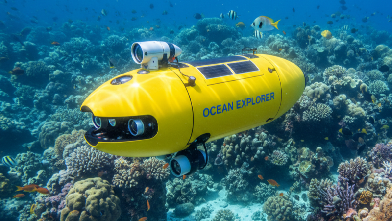 Autonomous Underwater Vehicle is an untethered, self-propelled underwater robot that operates independently without real-time human control, programmed to perform tasks like ocean floor mapping, environmental monitoring, and surveys using onboard sensors (sonar, cameras) for data collection