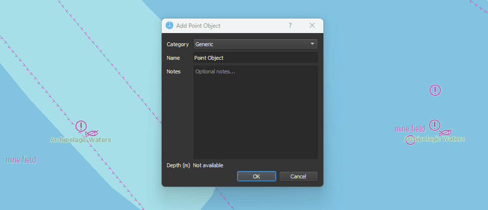 Create Point is an ECDIS function used to place and define a single point on the chart, enable precise position marking for monitoring, alerts, or route planning.