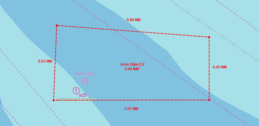 Create Area is an ECDIS function used to draw and define a custom area on the chart for monitoring, alerts, or route planning.