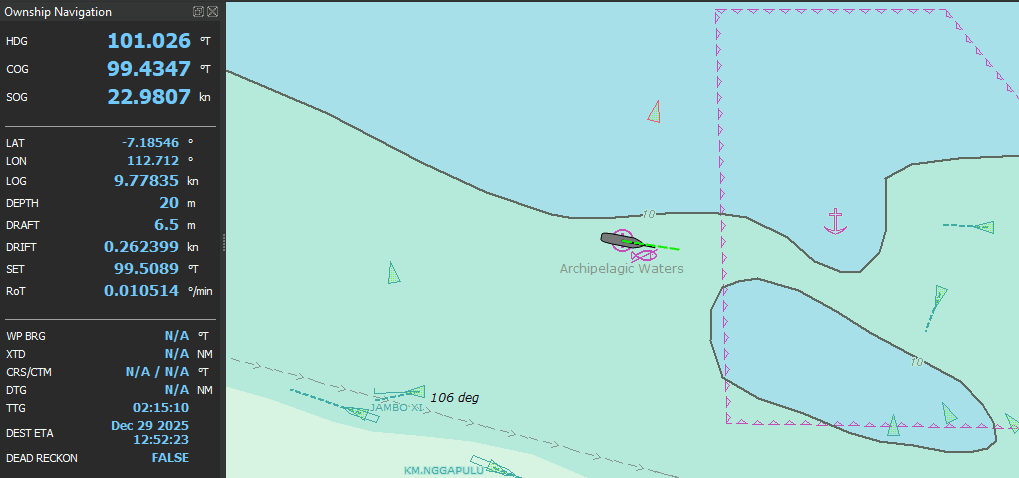 Ownship Detail Info is an ECDIS function used to display detailed information about the vessel’s current position, heading, speed, and status.