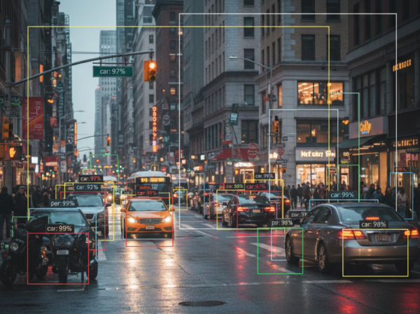 The recognition or detection of an object from visuals. This allows systems to not only recognize what is present in a scene but also understand where each object is situated
